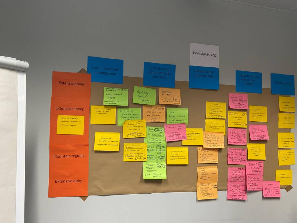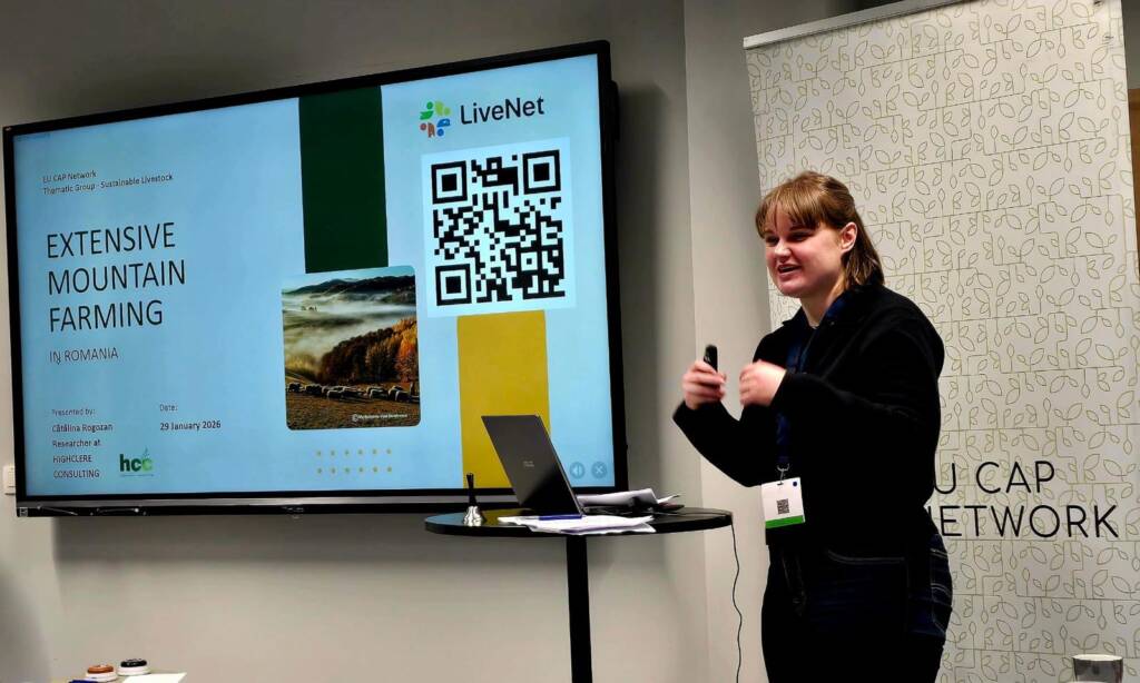 This initial meeting focused on two connected areas: 1) identifying challenges that the livestock sector faces, and 2) bringing these complex challenges into well-articulated pathways. The meeting began with short presentations focused on recent HEU projects results, current livestock policy environment and good practices in the livestock sector. Part of LiveNet project and as the leaders of WA4, which focuses on embedding the national livestock networks into the EU level AKIS ecosystem, HCC attended the meeting and had a presentation focused on extensive mountain farming in Romania.
